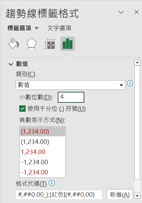 - 在方程式上點擊右鍵,選擇「趨勢線標籤格式」